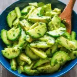 A refreshing and healthy salad made with creamy avocado, crisp cucumber, and a zesty lime dressing, perfect for a quick side or light lunch.