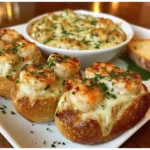 Indulge in these ultimate comfort food bombs, featuring a crusty Italian bread stuffed with a creamy, cheesy, garlicky shrimp filling.