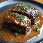 Step 11: For serving, garnish with fresh thyme (optional) and serve immediately with creamy mashed potatoes or your favorite side dish. Enjoy your delicious and indulgent meal!