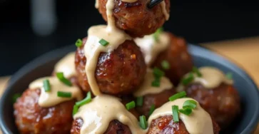 Savory, sweet, and slightly spicy Korean BBQ meatballs paired with a creamy, zesty gochujang mayo dip, perfect for appetizers or a main course.