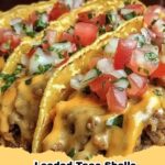 Serve your Loaded Taco Shells hot and fresh, piled high with your favorite garnishes. They're a complete meal on their own, but can be complemented by a fresh side salad or a simple bowl of rice and beans. Tacos are a beloved dish with a rich history; learn more about them on Wikipedia. Enjoy every cheesy, flavorful bite!