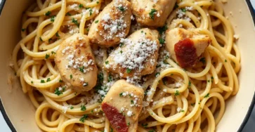 Step 12: Serve the Marry Me Chicken Pasta immediately, garnished with fresh basil leaves and an extra sprinkle of Parmesan cheese if you wish.