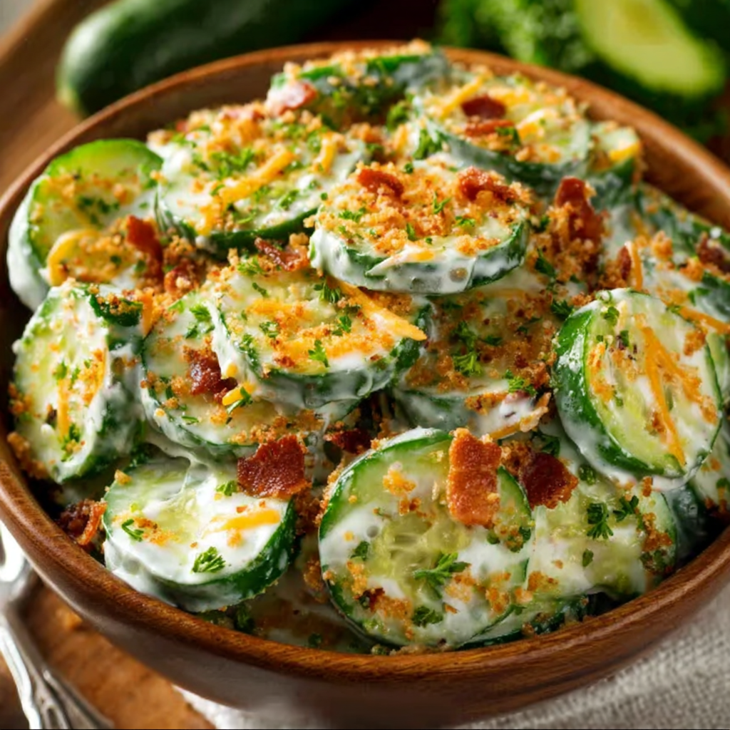 A refreshing and savory meal-prep friendly cucumber salad featuring crisp English cucumbers, turkey bacon, chicken ham, sharp cheddar, and a creamy ranch dressing, perfect for easy entertaining.